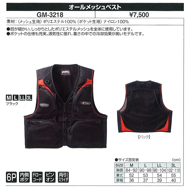 渓流 渓流釣り ベスト オールメッシュベスト gm 3218