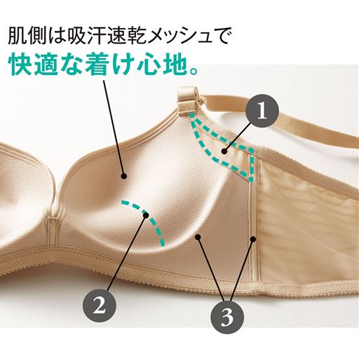 します バックパネルには肌離れの良いメッシュ地を使用