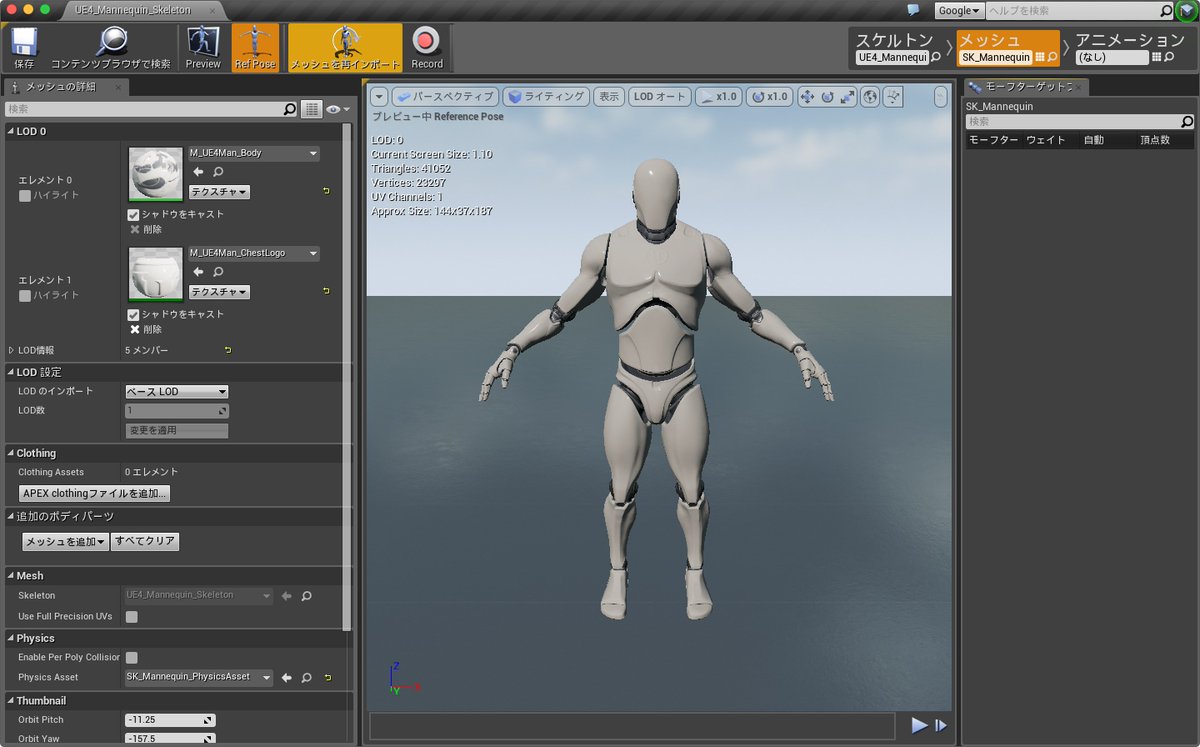 おっさんモデルのアニメーションをunreal engine 4にインポートする binto laboratory