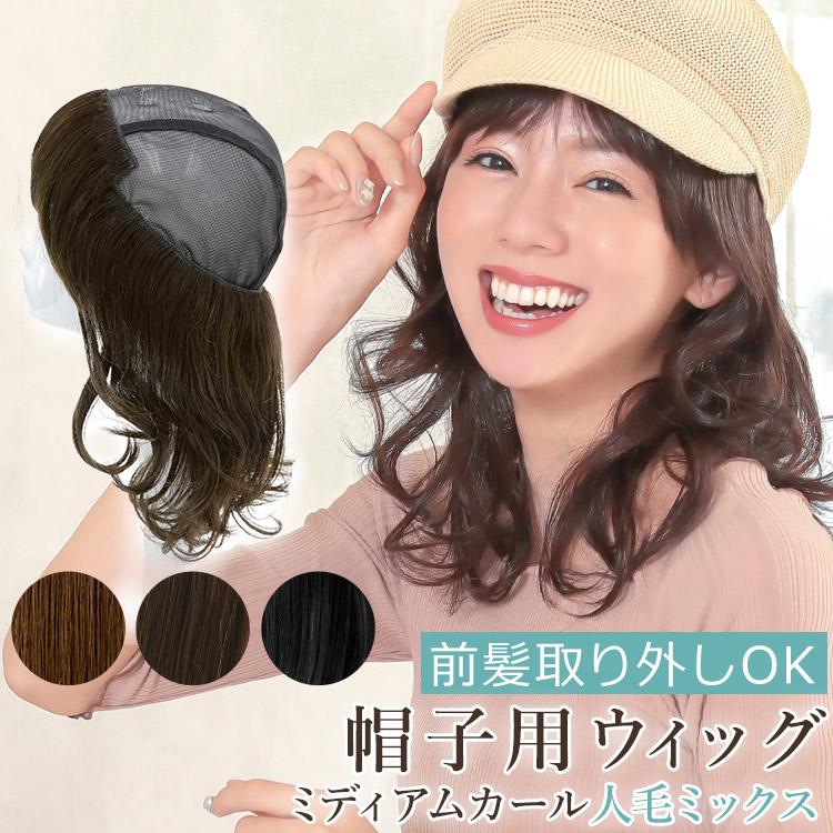 帽子用ウィッグ セミロング ミディアム 医療用ウィッグ 人毛 ミックス 医療用 ウィッグ 自然 髪付き帽子 カール ウイッグ wgn022 ウィッグ専門店アクアドール 通販 yahoo ショッピング