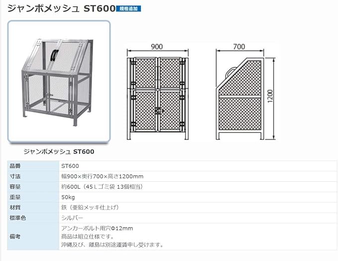 ジャンボメッシュst1100 大型ゴミステーション 鉄製メッシュ 住まいる通販