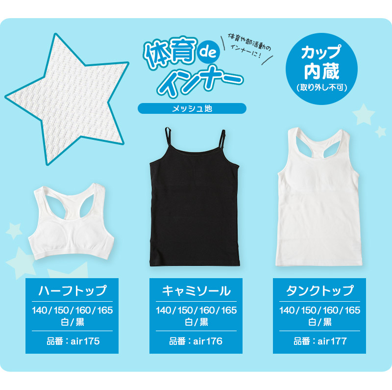 楽天市場 キャミソール ソフトカップ 中学生 キャミ 140cm 165cm 体育deインナー メッシュ夏 ガールズ 女の子 ジュニアインナー キッズ ブラトップ バスケ ダンス 下着 インナー カップ付キャミソール 小学生 140 150 160 165 すててこねっと