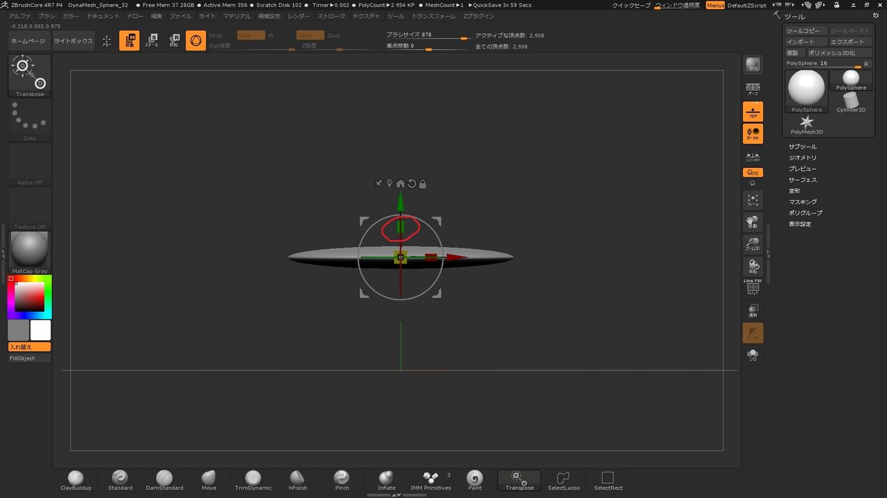 zbrushcoreのtransposeとgizmo 3d negativemindexception