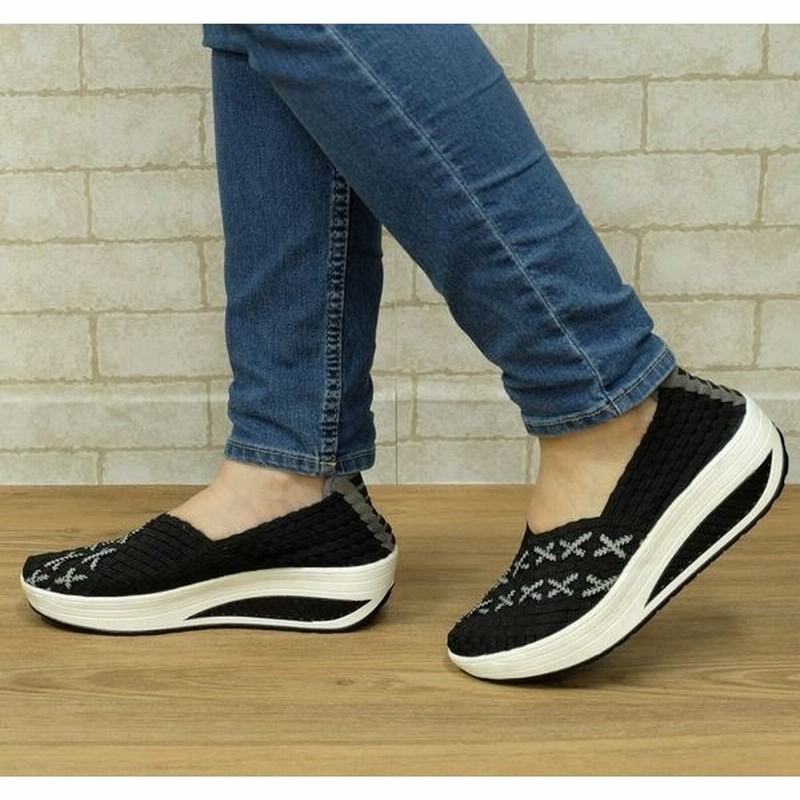 ゴムメッシュ厚底デザインスリッポンシューズ