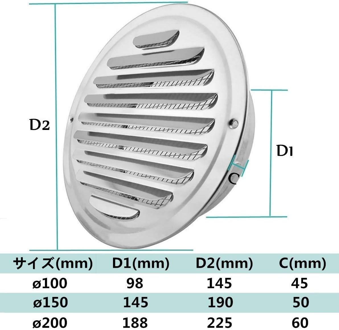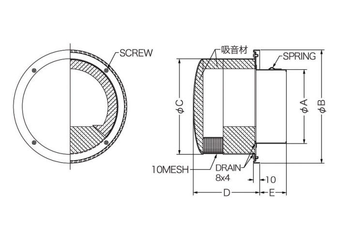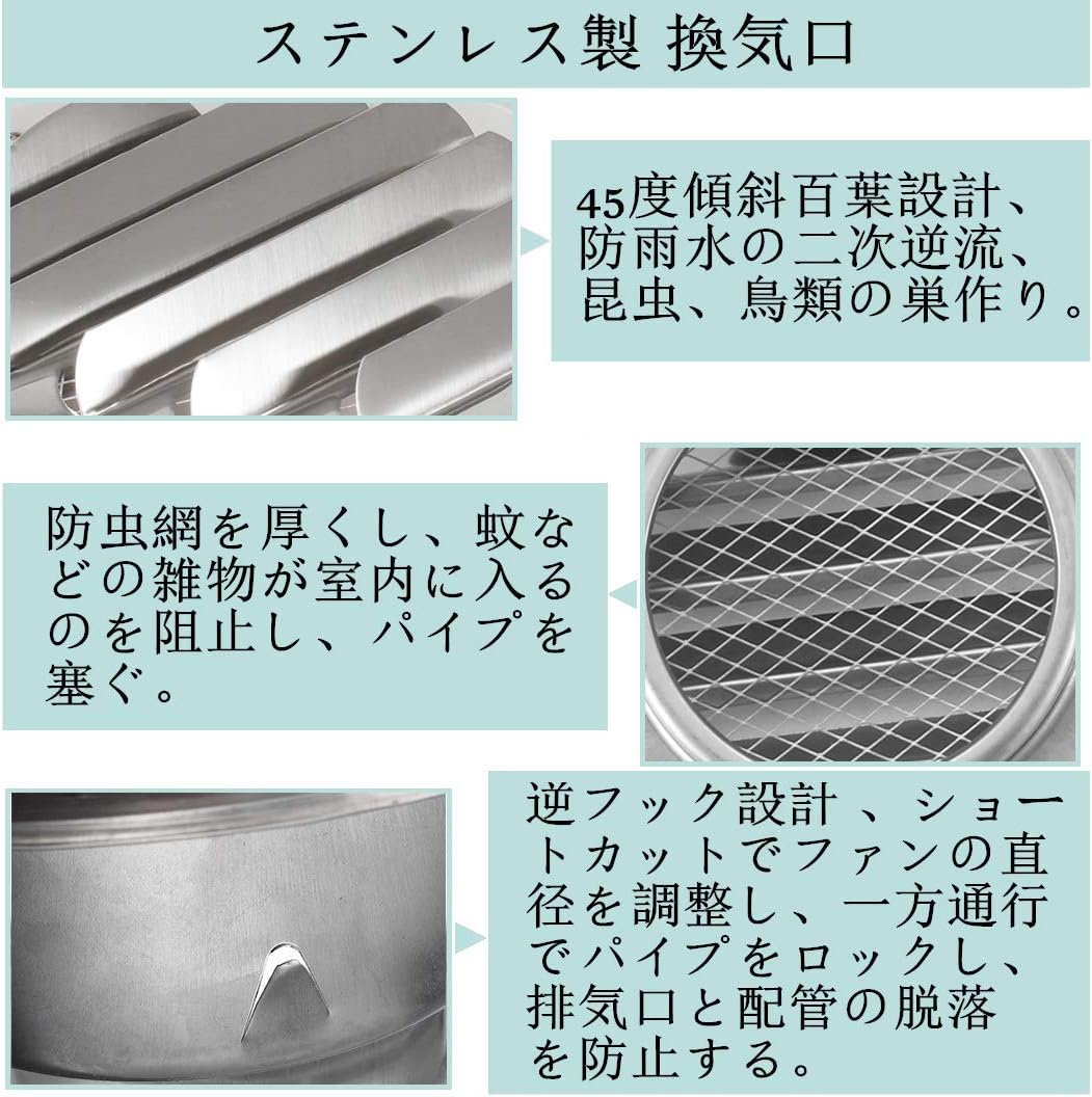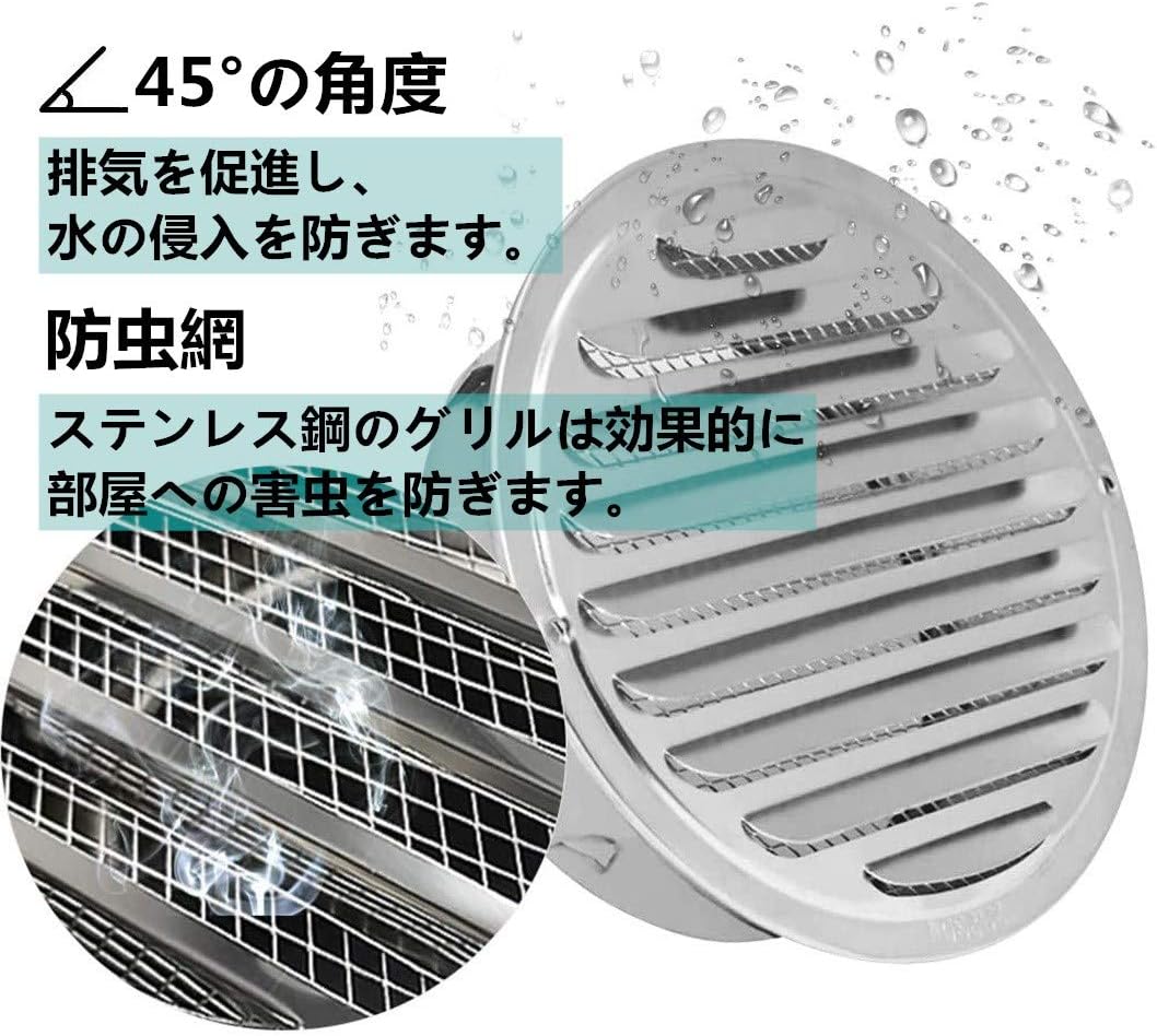ステンレス製換気口 防音用製品 金網型10メッシュ 丸型キャップ 給気専用