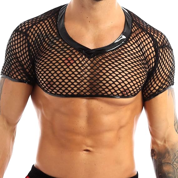 feeshow メンズ シースルー フィッシュネット タンクトップ メッシュ インナーシャツ 筋肉 シャツ 男性下着 トップス クロップトップ スポーツインナー