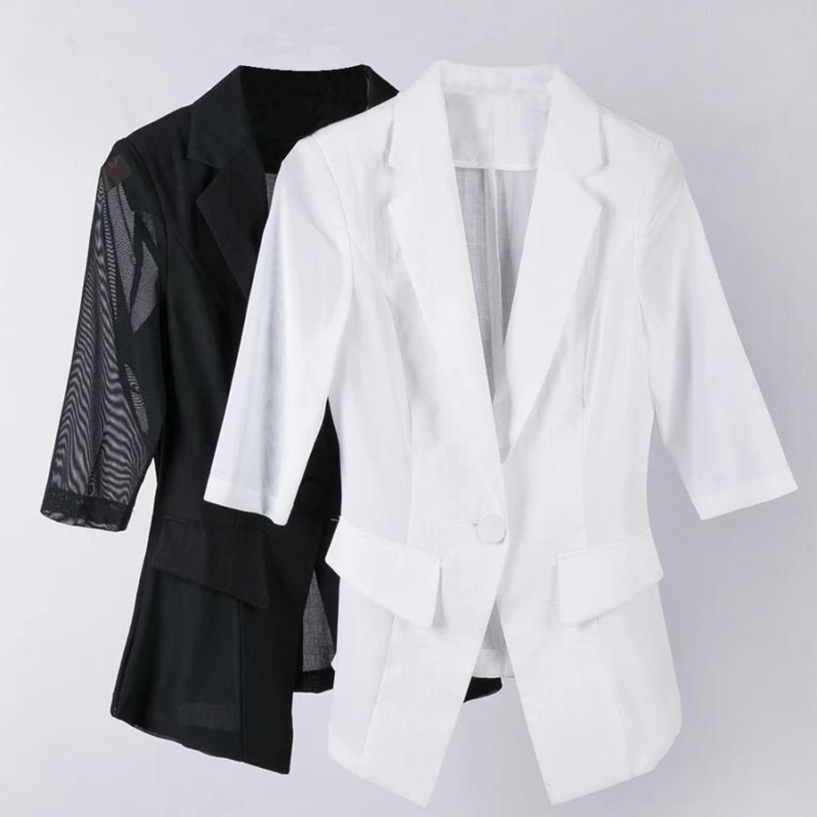 サマーオフィス カジュアルジャケット レディース テーラードジャケット 夏 シフォン透け感ジャケット メッシュ 薄手 無地 フォーマル ビジネス 七分袖 aug 3554 イセンストア 通販 yahoo ショッピング