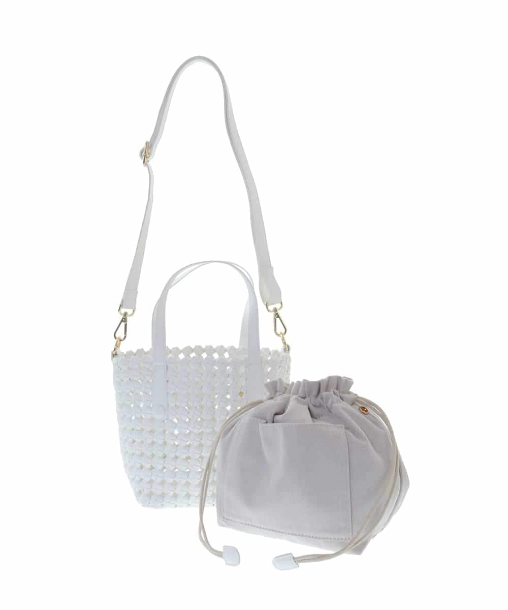 巾着付きデザインメッシュトートバッグ