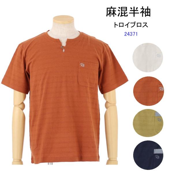 トロイ ブロス 麻混半袖サファリジャケット 全2色 アウター メンズ 紳士 日本製 シニア カーキ ベージュ 便利なポケット p10042 春夏 sai シャツジャケット ベージュll完売 サマージャケット 上着 カジュアル