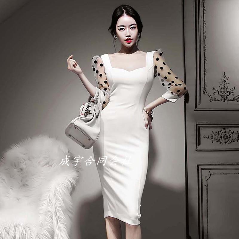 ドット柄 チュールドレス シフォン aライン ワンピース レース メッシュ 透け感 シースルー ギャザースカート 長袖 ベルスリーブ フォー au pay マーケット