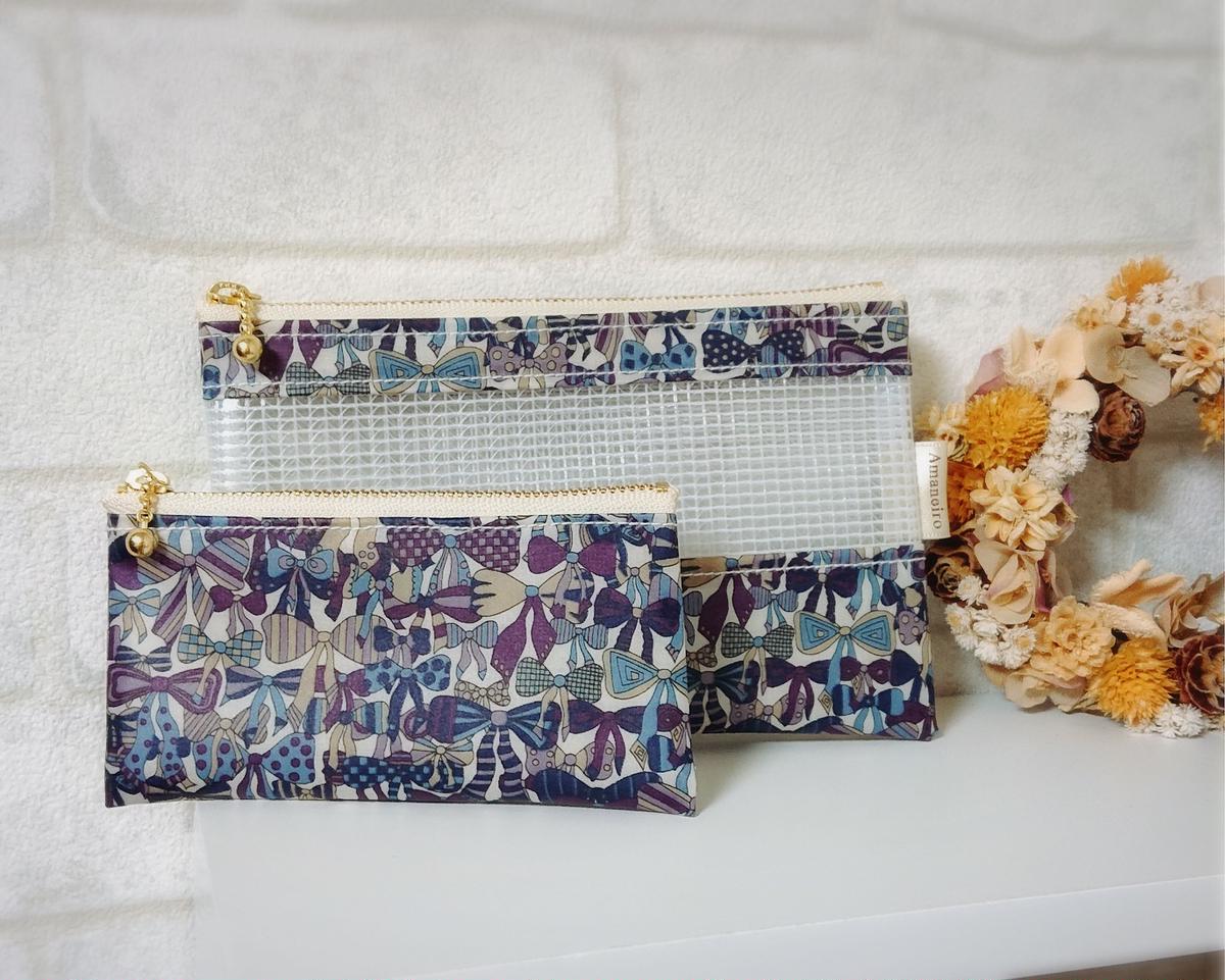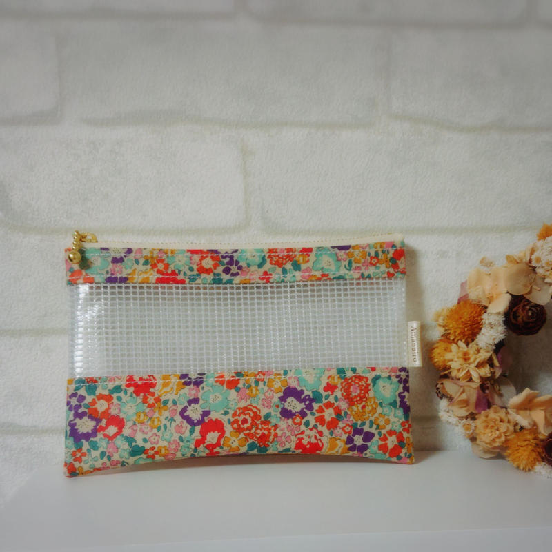 リバティラミネート生地 メッシュビニールの親子ポーチ no 191111b