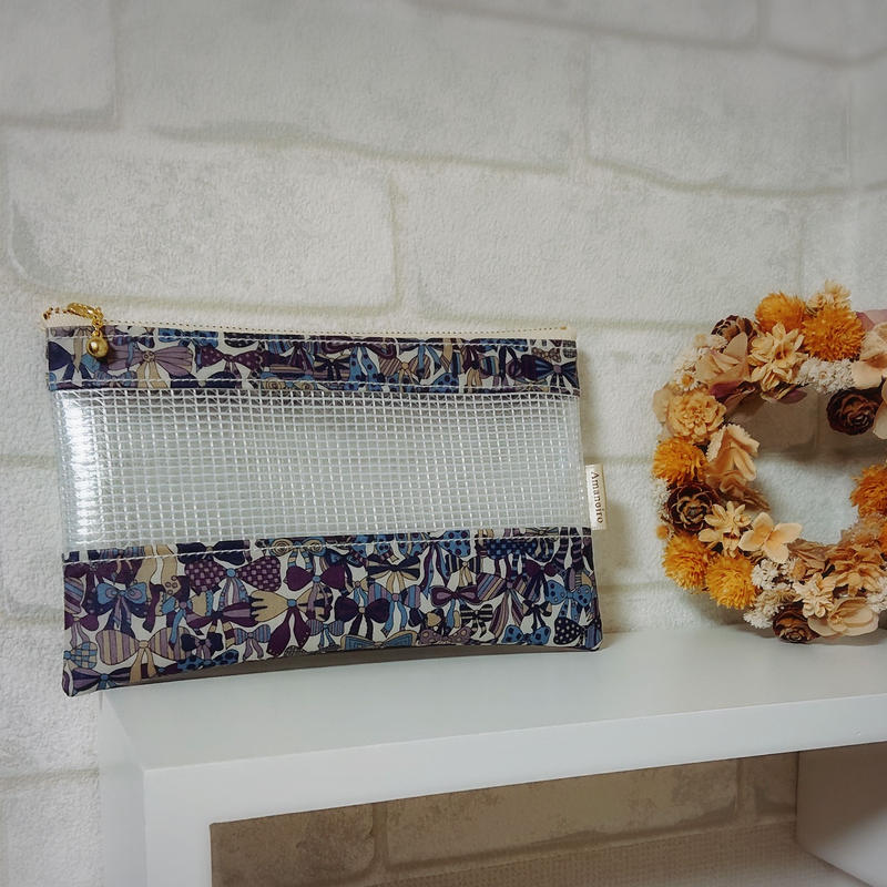 ラミネート生地 メッシュビニールのポーチ 雨音色 amaneiro by オランジェ de 乙女