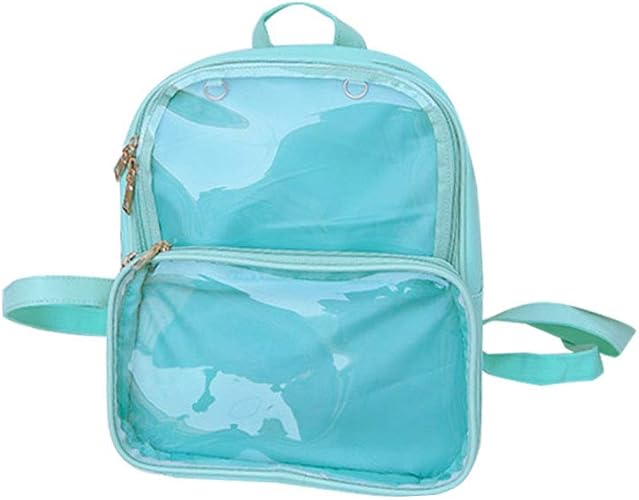 痛バッグ 痛リュック 2段 ビニール メッシュ ポケット 缶バッジ リュックサック ホワイト キャンバス地 イベント用 低廉 見せバッグ