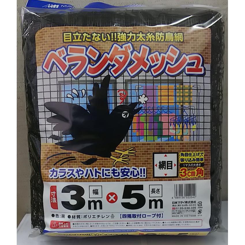 鳥害対策 ベランダメッシュ 3m 5m 30mm角目 黒色 黒色で目立たずスッキリ 防鳥 鳥よけ 外から目立ちにくい ベランダ資材 マルソルオンラインショップ