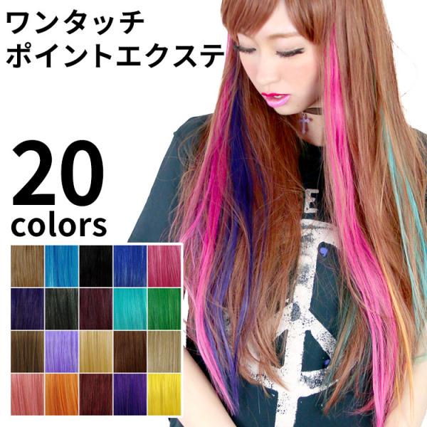 メッシュ ワンタッチ エクステ カラフル 14本セット エクステンション つけ毛 コスプレ イメチェン