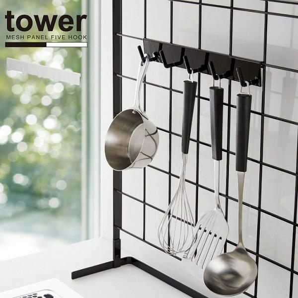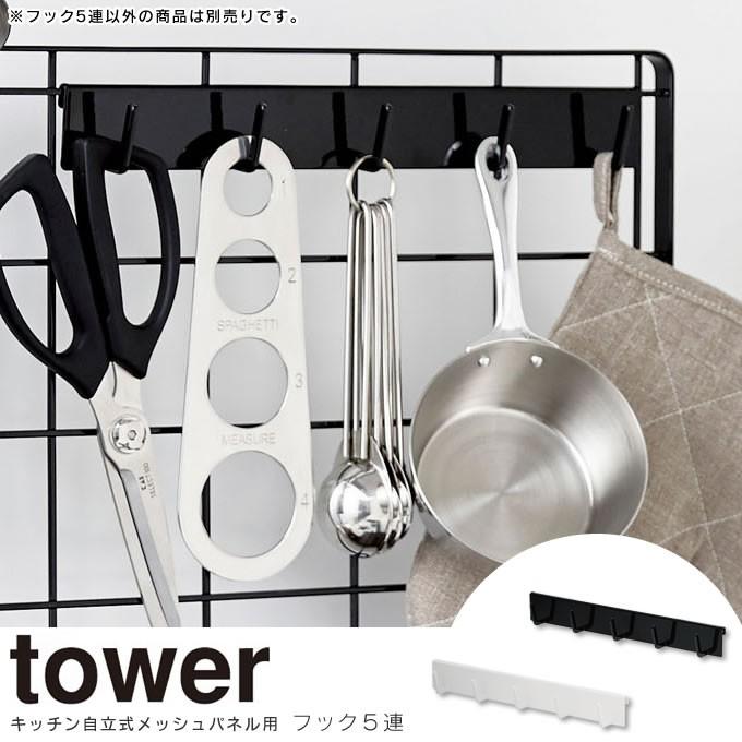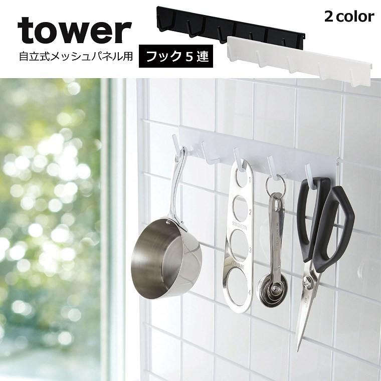 自立式メッシュパネル用 パーツ フック5連 tower タワー 山崎実業 メッシュパネル用パーツ キッチンツール 収納フック キッチン 収納 キッチンツール 収納 キッチンツール キッチン
