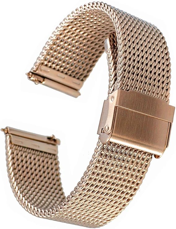 zhuge クラシック ミラネーゼ 腕時計用ベルト ステンレス鋼 メッシュ ベルトメタル ブレス バンド 防水 スライド式 バックル イージークリック 18mm 20mm 22mm