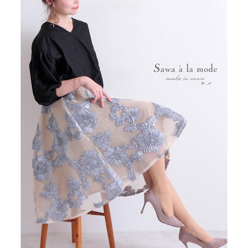 メッシュボタニカル花柄スカート