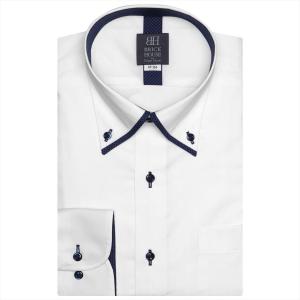 形態安定ノーアイロンメッシュインナー付き長袖ワイシャツボタンダウン白 ブルーチェックスリム