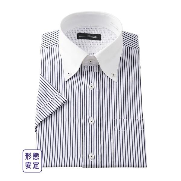 ヨークメッシュでムレ軽減 形態安定 吸汗速乾 半袖デザインワイシャツドゥエボタンダウン