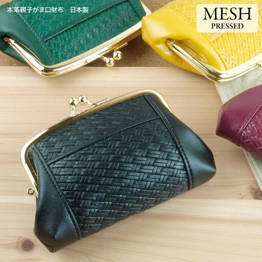 がま口 本革 メッシュ型押し 財布 レディース 日本製 小銭入れ 親子がま口 ダブル おしゃれ 黒 黄 メッシュ調 型押し メッシュ 836 9 836 9 がま口工房mami yahoo 店 通販 yahoo ショッピング