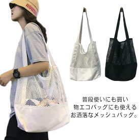 ペンギン柄の片面メッシュポーチ 巾着