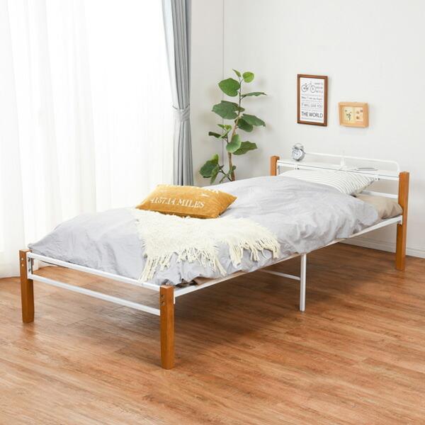 シングルベッド 木製ベッド ベッドフレームのみ単品 アイアンベッド メッシュ床面 天然木 シングル ベット パネル型