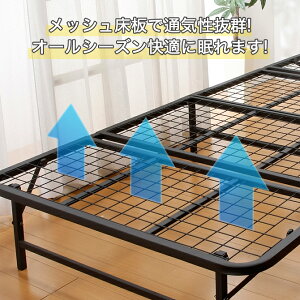 折りたたみベッド シングル スチール製 メッシュ床面 四つ折れ式 耐荷重90kg 完成品