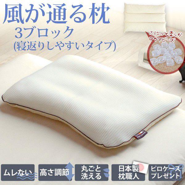 風が通る枕 3ブロックタイプ 43 63cm ハニカムメッシュ アクアビーズ 枕 日本製