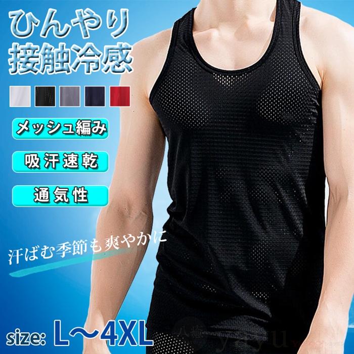 タンクトップ メッシュ編み 接触冷感 メンズ インナーシャツ 肌着 ノースリーブ 夏 無地 肌触り 吸汗 速乾 通気性 ストレッチ 薄手 代引不可 pengch05 八癒ショップ 通販 yahoo ショッピング