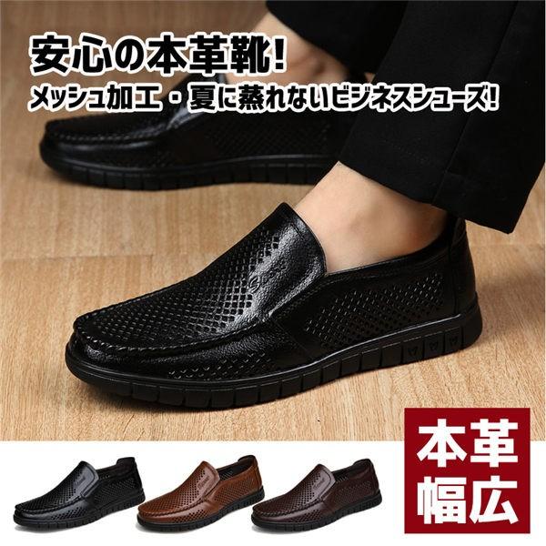 メンズ ビジネスシューズ メッシュ 革靴 通気 通気性 通気性抜群 26 5 メッシュシューズ cm ブラック ローファー 即納