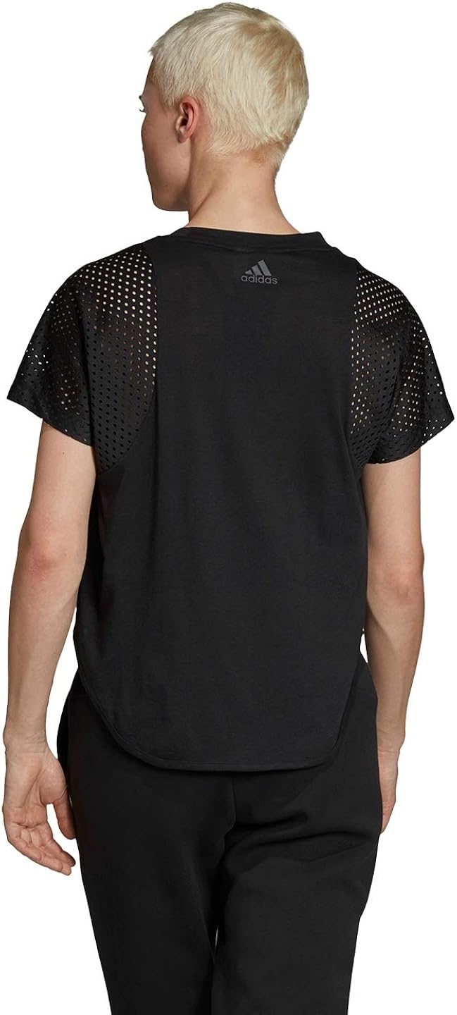 アディダス adidas スポーツウエア 切替 メッシュ シャツ tシャツ vネック ライン 半袖 ブラック ゴールド 黒 金 s kk0226 レディース