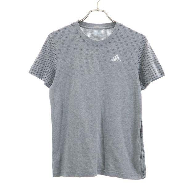 アディダス エアロニット climacool ドット柄 半袖 tシャツ l グレー adidas aeroknit メッシュ メンズ 古着 200910 メール便可