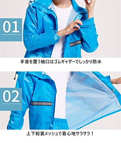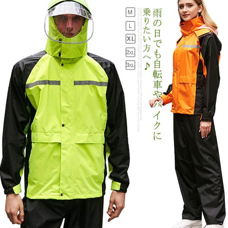 レインコート レインウェア レインスーツ 上下セット 透湿 男女兼用 雨具 雨合羽 自転車かっぱ 裏通気メッシュ 防水 撥水 防風 再帰反射 ツバ付き 自転車 バイク 通学通勤 農作業 釣り 登山 ゴルフ アウトドア 全3色