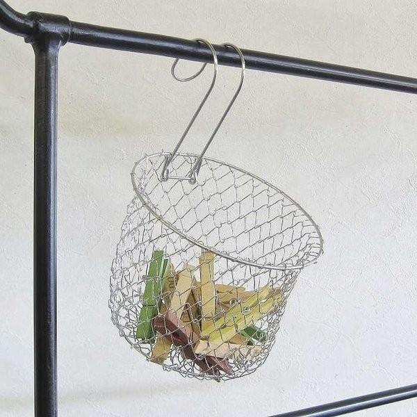 ワイヤーメッシュピンチバッグ 洗濯ばさみ入れ 洗濯バサミ収納 カゴ ワイヤーバスケット ランドリーグッズ 雑貨 ギフト プレゼント