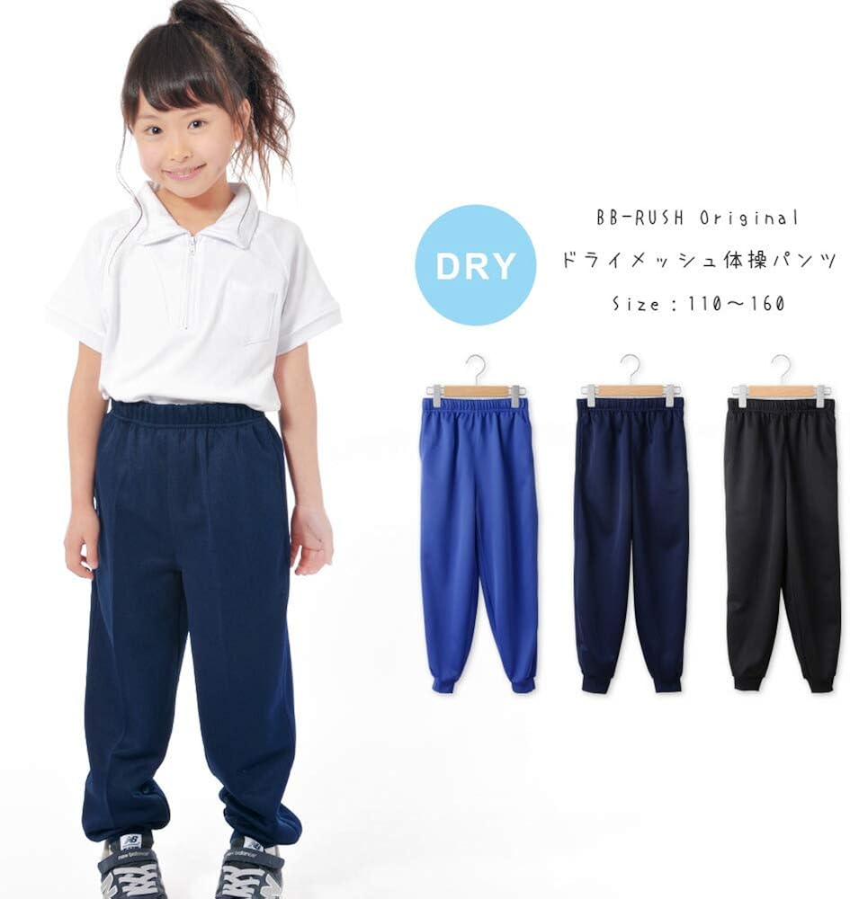 amazon co jp bb rush 吸汗速乾ドライメッシュジョガーパンツ体操服 体操ズボン 体操パンツ 男の子 女の子 110 120 130 140 150 160 170 黒 紺 青 110 170cm gz 96 bb 01 120 navy 服 ファッション小物