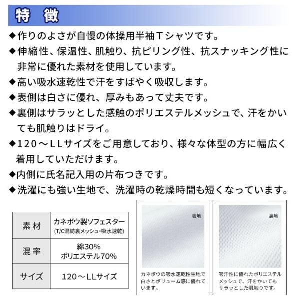 体操服 専門ブランド 速乾 ss ll 半袖 体操着 裏メッシュ 丸首 スポーツtシャツ 白 しろ ss s m l ll メール便 送料無料 学生服の専門店 ワークサポート
