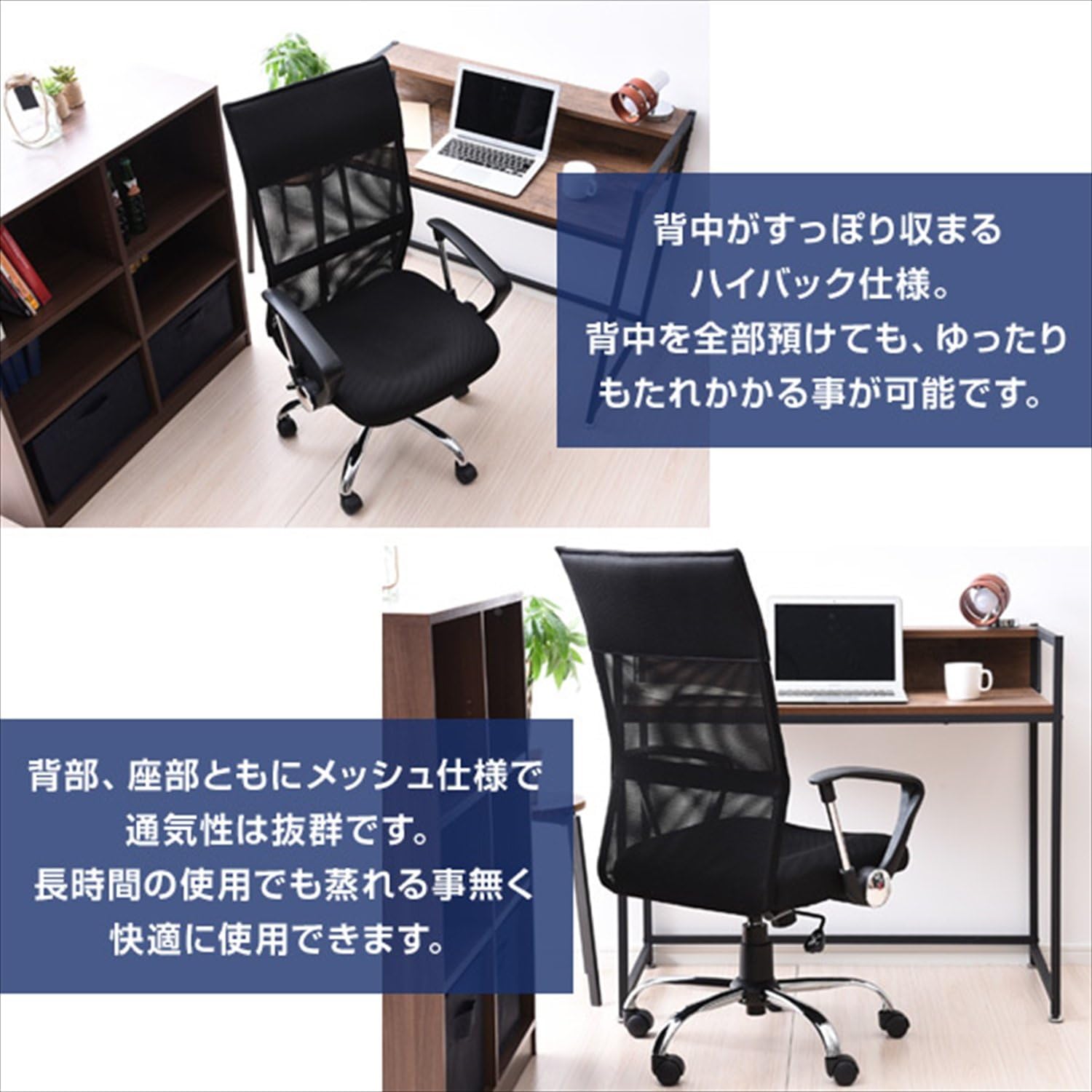 山善 yamazen ハイバック爽快メッシュチェア 幅615 奥行635 高さ1100mm ブルー emg 778h bl 1脚 直送品