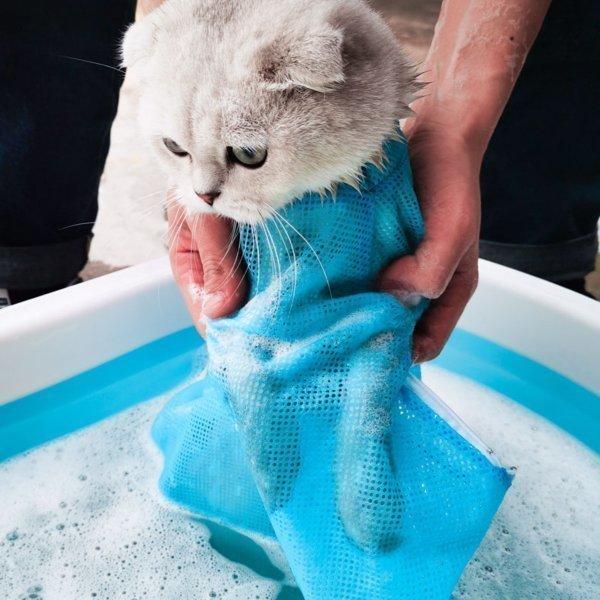 ペット用 お風呂バッグ シャンプー 爪切り時 猫用 グルーミングバッグ お風呂 バッグ 耳掃除 暴れる猫ちゃん対策 キャット 保護ネット ペット用 メッシュ袋 猫用ネット袋 お風呂用 メッシュ バッグ