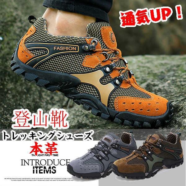 トレッキングシューズ メンズ 登山靴 本革 メッシュ ランニングスニーカー メッシュシューズ アクティブシューズ 靴 厚底 衝撃吸収 柔軟 通気 送料無料 dengsen0005 服屋123 通販 yahoo ショッピング