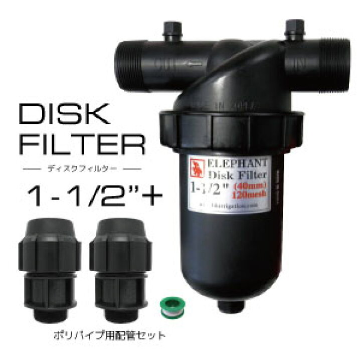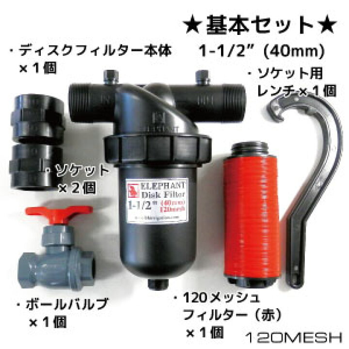 送料込 ディスクフィルター ポリパイプ用配管セット口径40mm 1 1 2インチ 潅水ろ過器 ろ過フィルター 砂こし 120メッシュポリボールバルブ ソケット バルブソケット シールテープ付き たかしまオンラインショップ