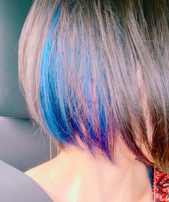 黒髪 青メッシュ ショート