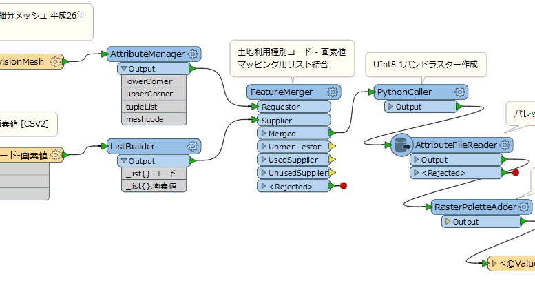 fmeケーススタディ メッシュデータのラスター化 土地利用細分メッシュ