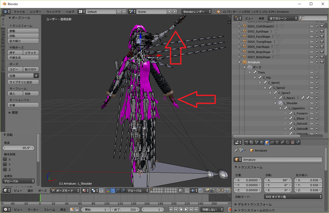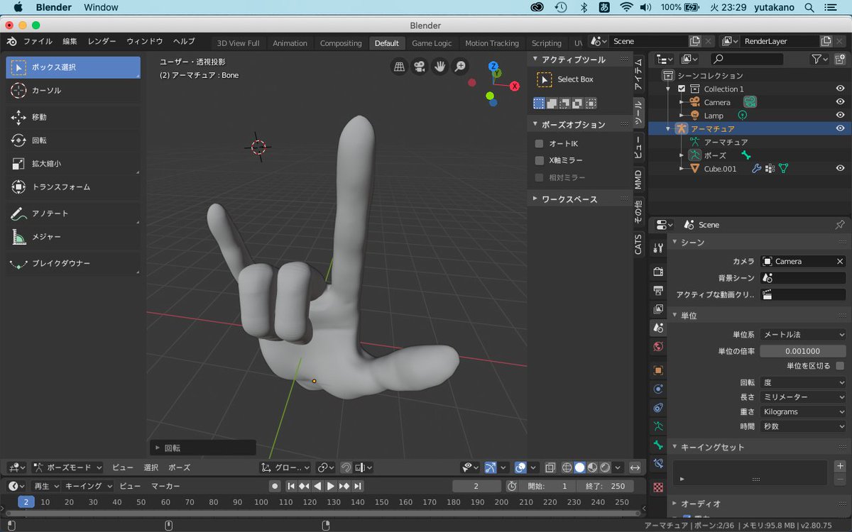 blender ボーン 手