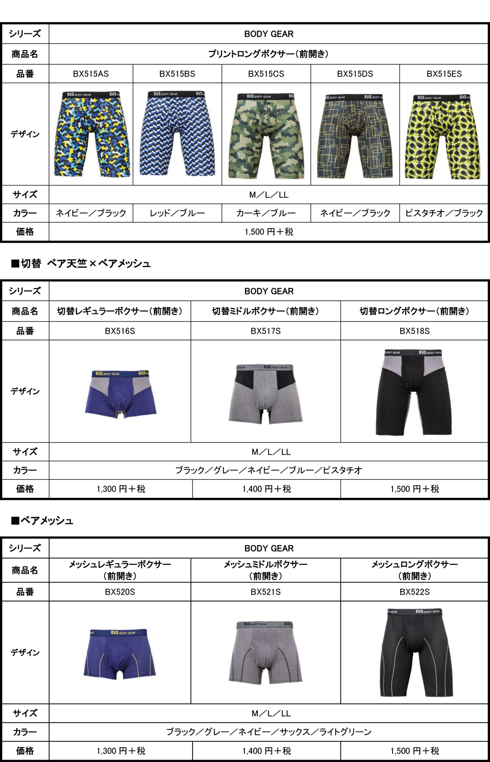 b v d body gear シリーズ 2019年3月より新発売 b v d