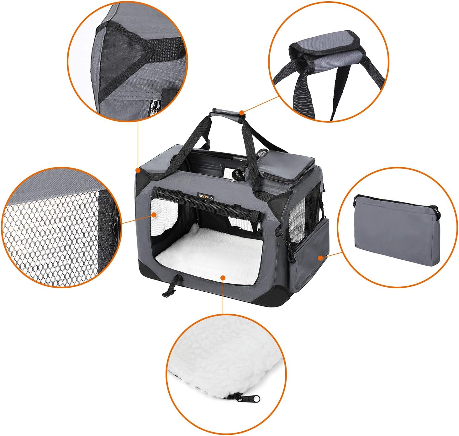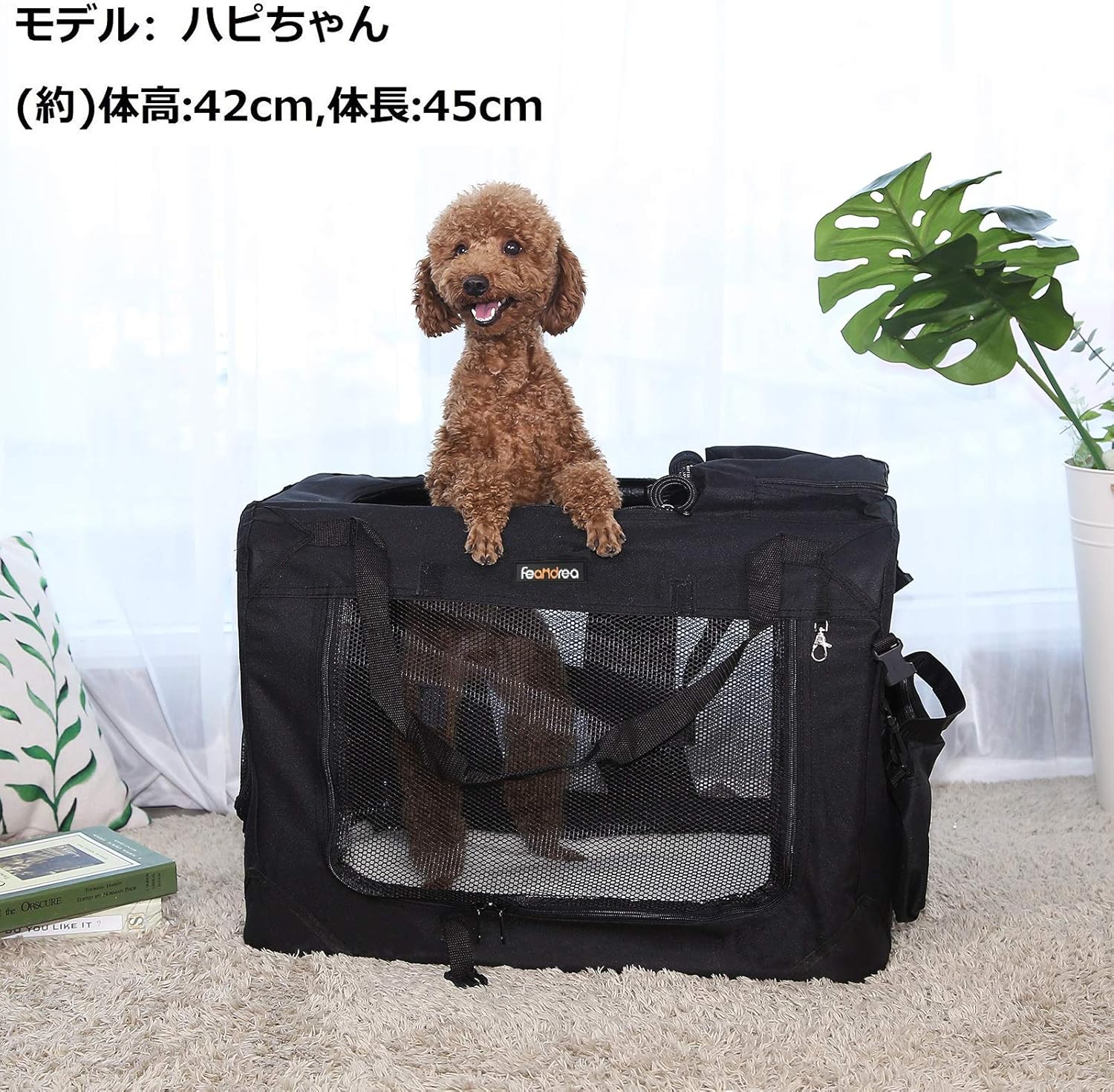 eandrea ペットキャリー 60 40 40cm 変形しない犬用キャリー 折りたたむ 4面メッシュ 通気性抜群 npdc60h