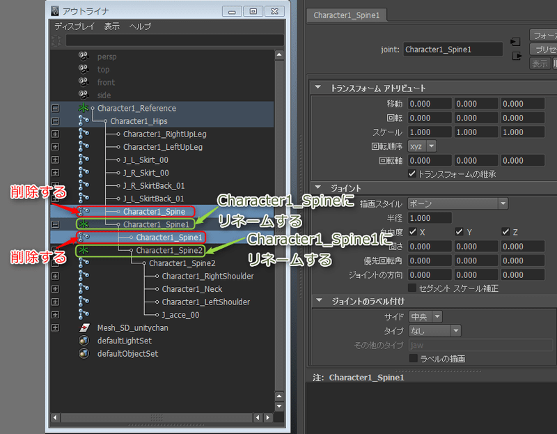 maya スキニング後 メッシュ削除