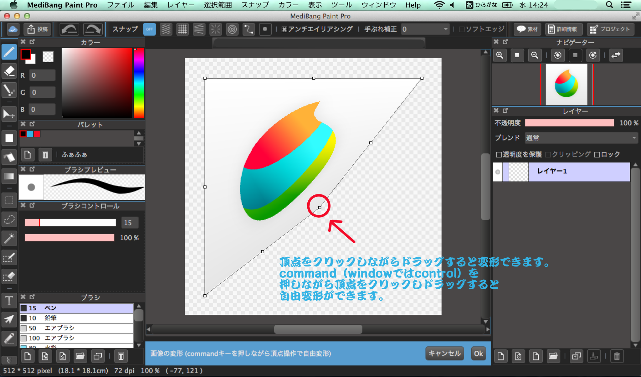 ipad 拡大 縮小 自由変形 画像の回転 メディバンペイント medibang paint