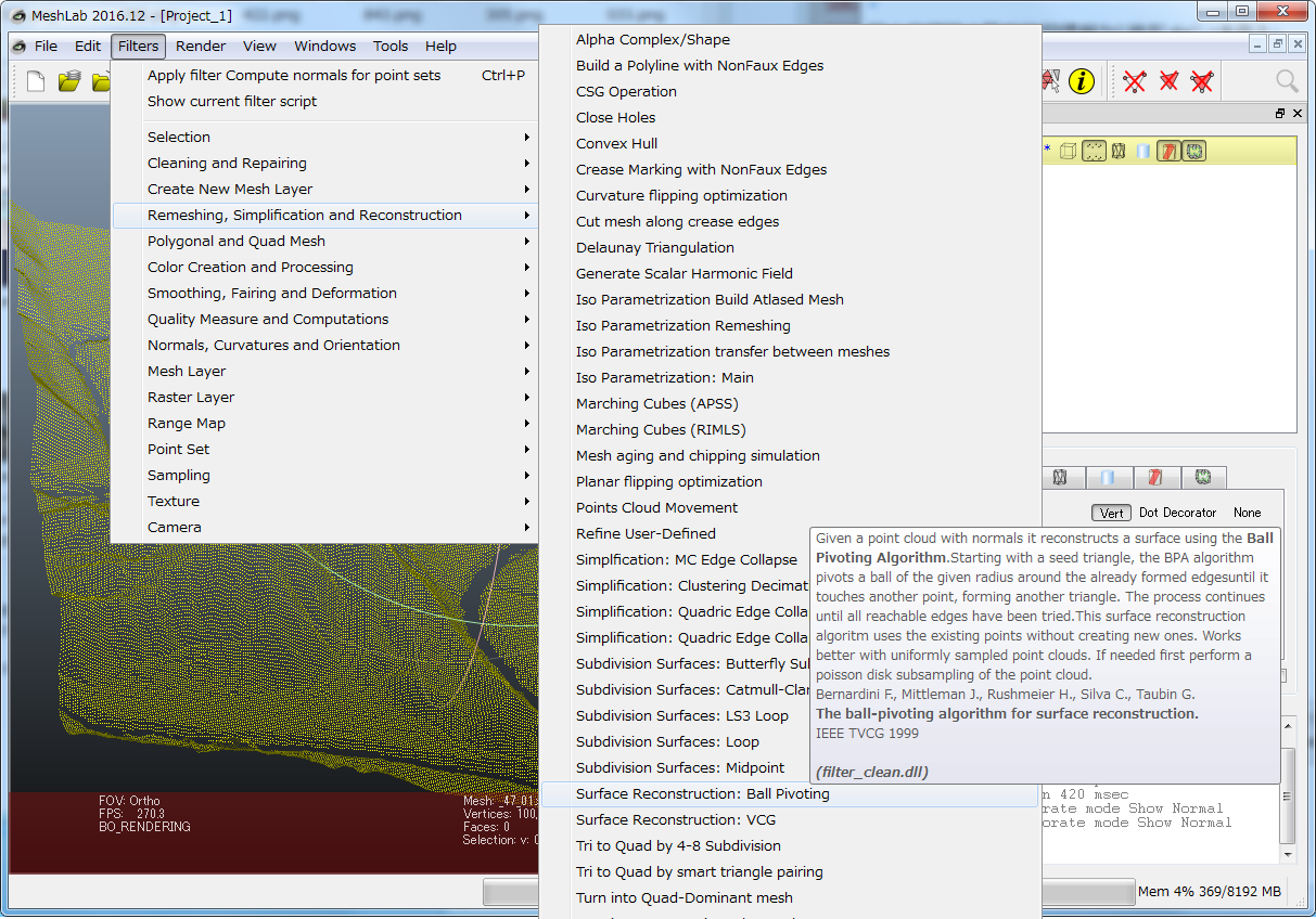 meshlabでpcdデータをメッシュに変換 書き出し pointcloudconsortium
