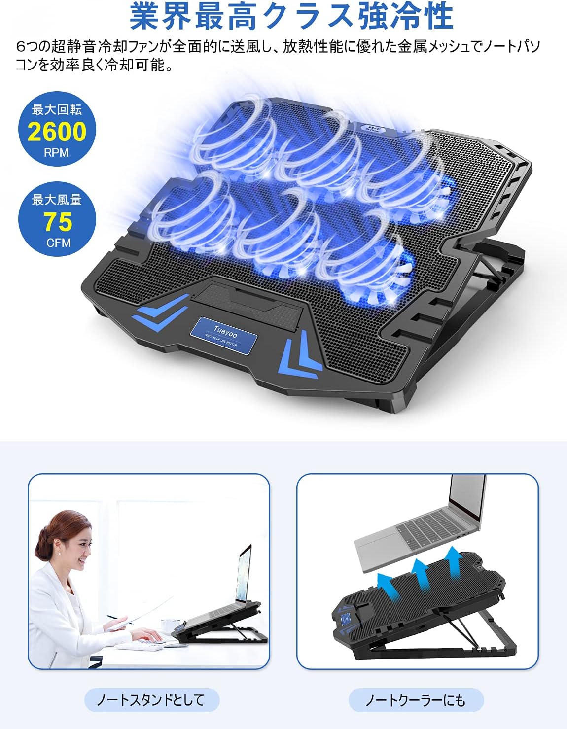 2021最新型 23db超静音 ノートパソコン冷却パッド ノートパソコン冷却ファン 6つ冷却ファン搭載 大風量 ノートpcクーラー 滑り止 lcsriya store